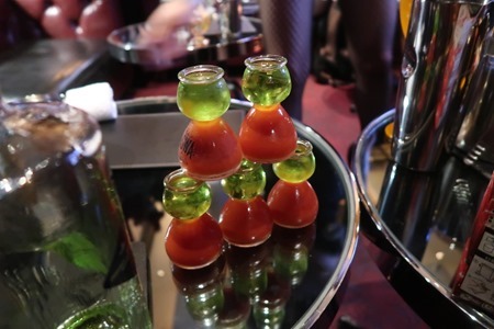 ボムグラスのネック部分にトマトジュースを触れさせずキレイに液体を通せたときは